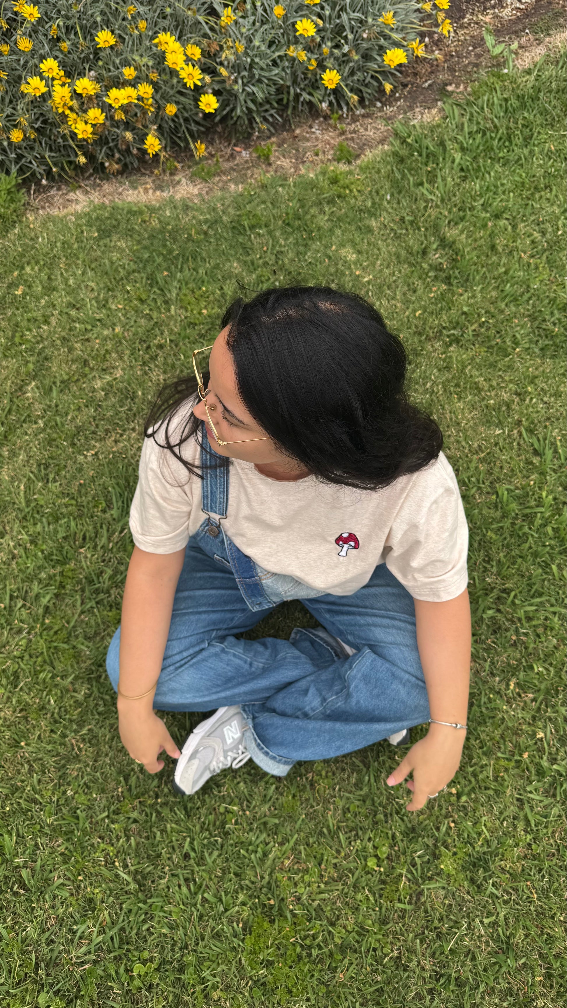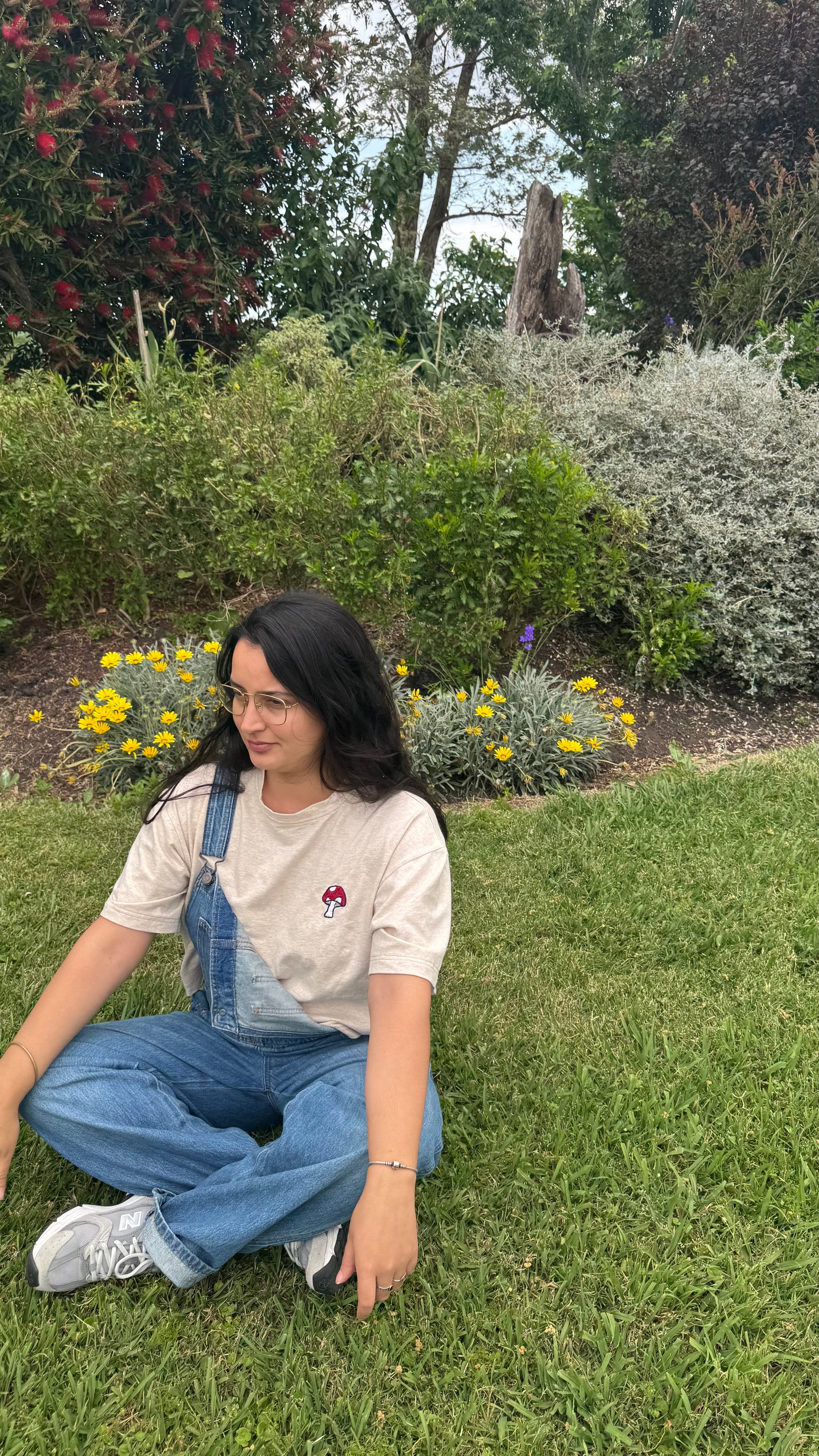 Cuello redondo confeccionada en 100% algodón parche con nuestro logo en el hombro y bordado de honguito al frente