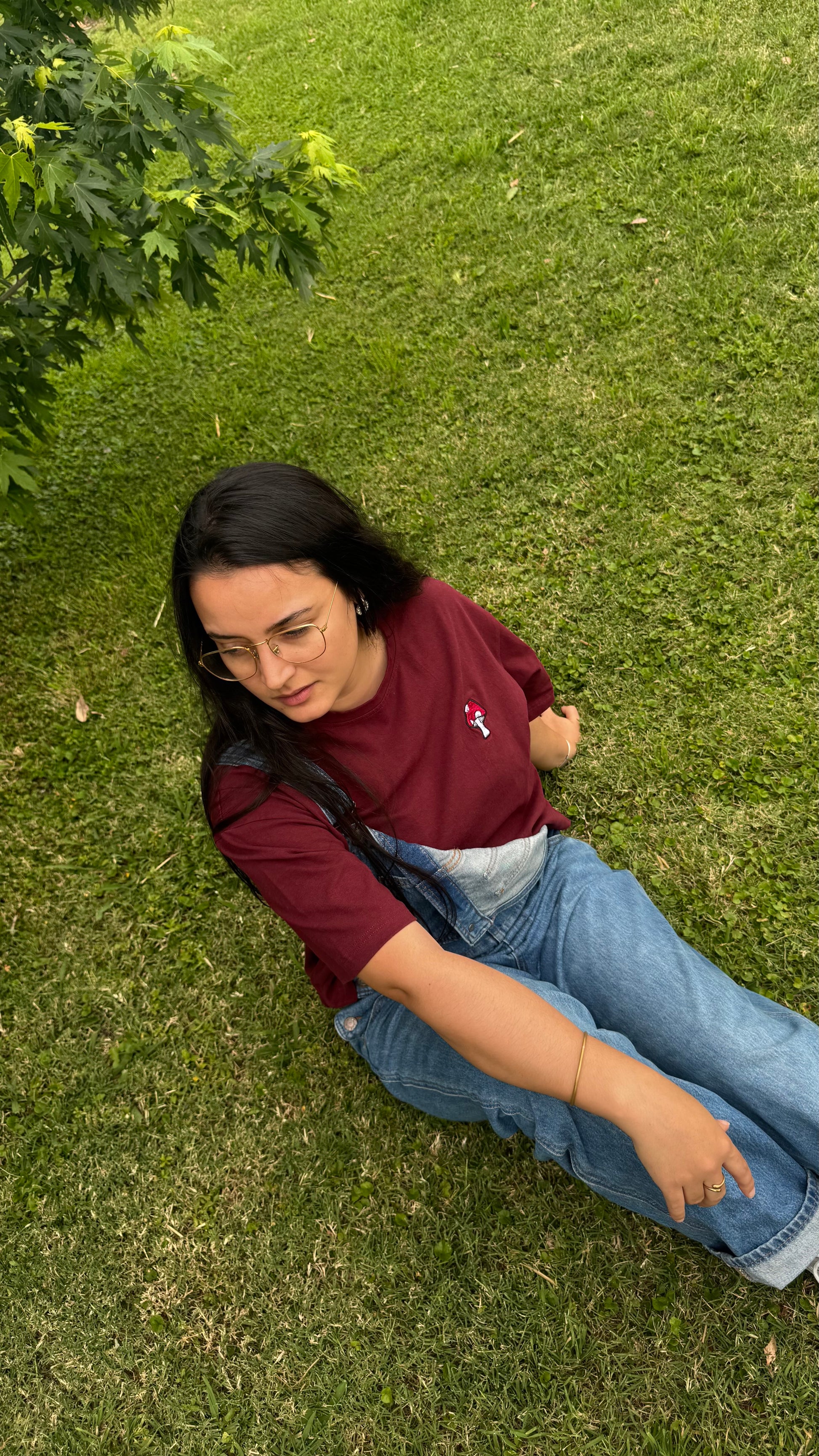 Cuello redondo confeccionada en 100% algodón parche con nuestro logo en el hombro y bordado de honguito al frente